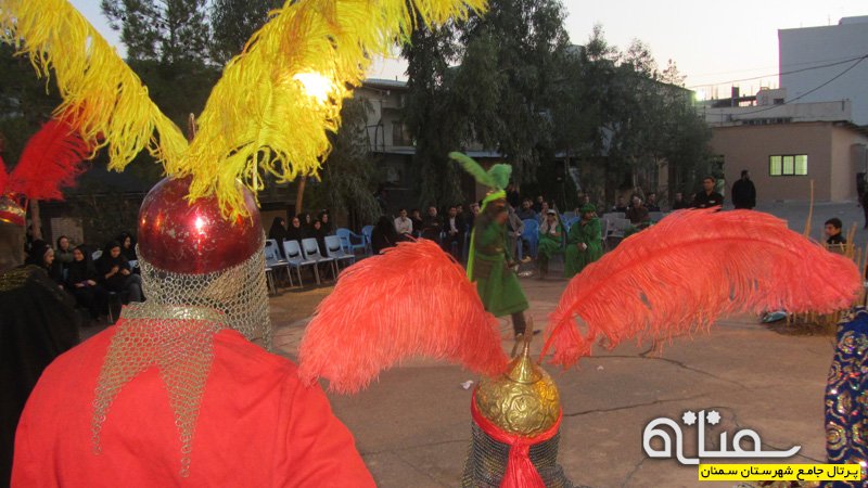 در اين مراسم كه به همت دفتر بسيج دانشجويي شهیدمنشی زادگان مركز علمي كاربردي جهاددانشگاهي سمنان و معاونت فرهنگي جهاددانشگاهي استان سمنان برگزار شد، یک گروه 20نفره از تعزیه خوانان سمنان به تعزیه خوانی حضرت اباعبدالله الحسین (ع) در روز عاشور درکربلا پرداختند.