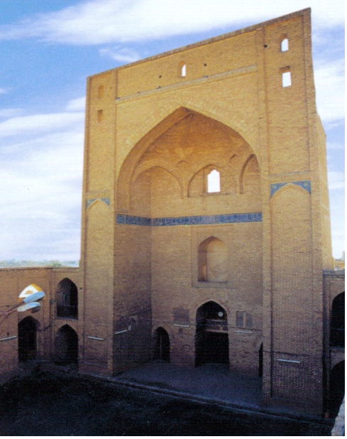 ايوان آجري رفيع و بلند اين مسجد به ارتفاع بيش از 21 متر در قسمت غرب صحن مسجد قرار دارد كه در زمان سلطنت شاهرخ تيموري و به وسيله وزيرش خواجه شمس الدين علي باليچه سمناني و با استفاده از مال خاص وي و گنبد آن به وسيله خواجه ابوسعيد در عهد سلطان سنجر سلجوقي احداث گرديده است . در قسمت فوقاني اين ايوان كه نمونه كاملي از معماري دوره ايلخاني و به سبك رازي است و سه بدنه آن كتيبه اي از كاشي وجود دارد كه با خط ثلث سفيد بر متن لاجوردي نوشته شده و مشتمل بر تاريخ بناي ايوان و نام باني ساخت آن است. در پايين اين كتيبه چند لوح سنگي بزرگ ديده مي شود كه مهمترين آنها دولوحي است مشتمل بر فرمانهاي پادشاه صفويه كه براي اطلاع قاطبه اهالي سمنان در ايوان نصب كرده اند. دهنه ايوان 40/10 متر و در پشت آن مقصوره اي مربع شكل به و طول و عرض 14 قدم و به ارتفاع بيش از 5/14 متر وجود دارد كه توسط گنبد سلجوقي با شكوهي پوشيده شده است و از طريق دو درب كوچك طرفين محراب ايوان به صحن مسجد و با چند درب بزرگ و كوچك به شبستانهاي اطراف راه مي يابد.